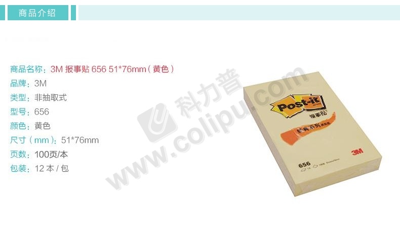 3M 纸质便利贴 656 76*51mm (黄色) 100页/本