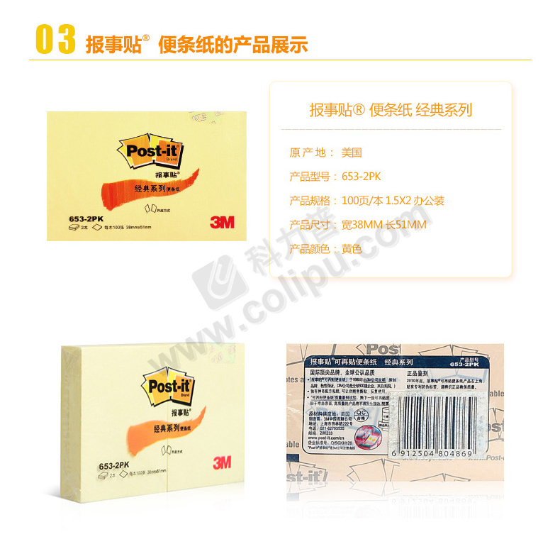 3M (合宜)易事贴 657b 4*3 96*76mm 100页 黄色