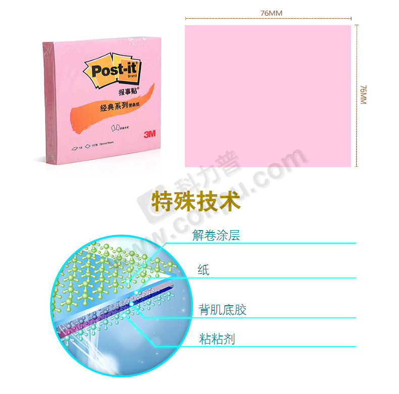 3M 报事贴 654P-PI 76×76mm (粉红) 100页/本 12本/包 新老包装交替中,以实物为准