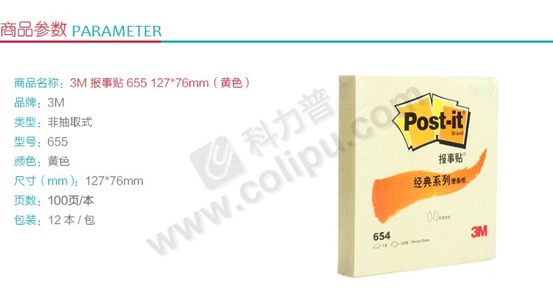 3M 经典报事贴 粉彩系列 655P-PI 127*76mm (粉色) 100页/本 12本/包 新老包装替换中,以实物为准