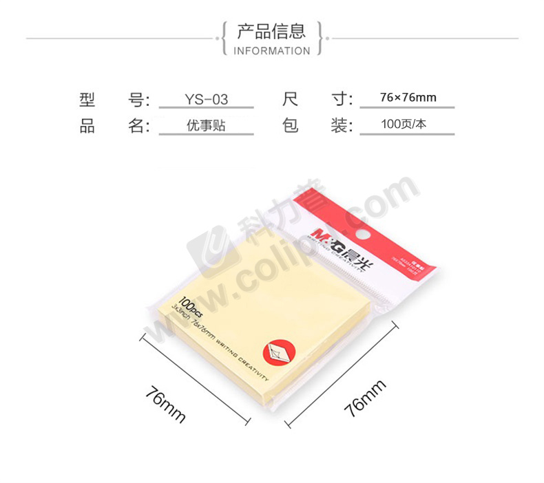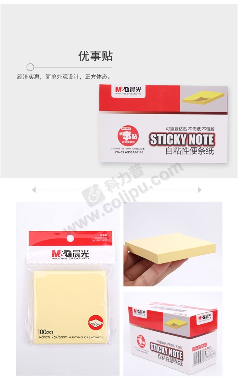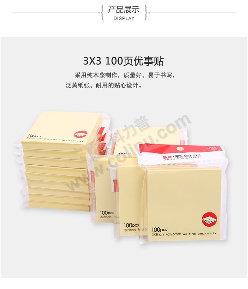 齐心 强力系列易事贴 D5002 3*3 76*76mm 100张 黄色