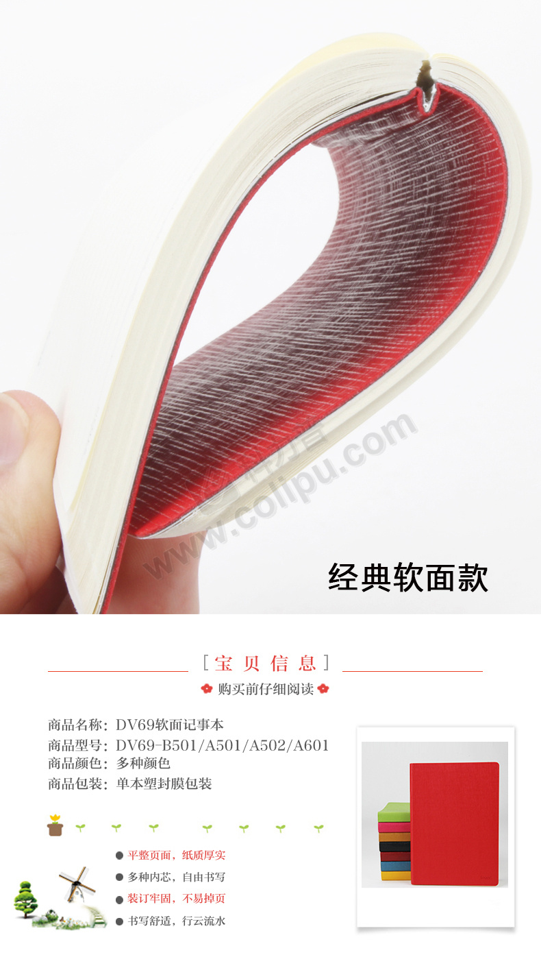 红缘B2018/18K 黑色仿皮笔记本 记事本经济型