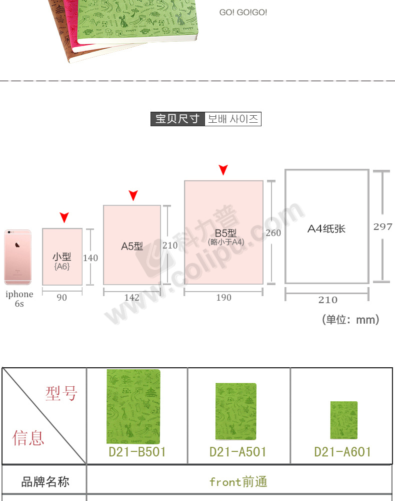 齐心 线圈本 CPA5607 A560页双螺旋PP面本 1/20/80 混色