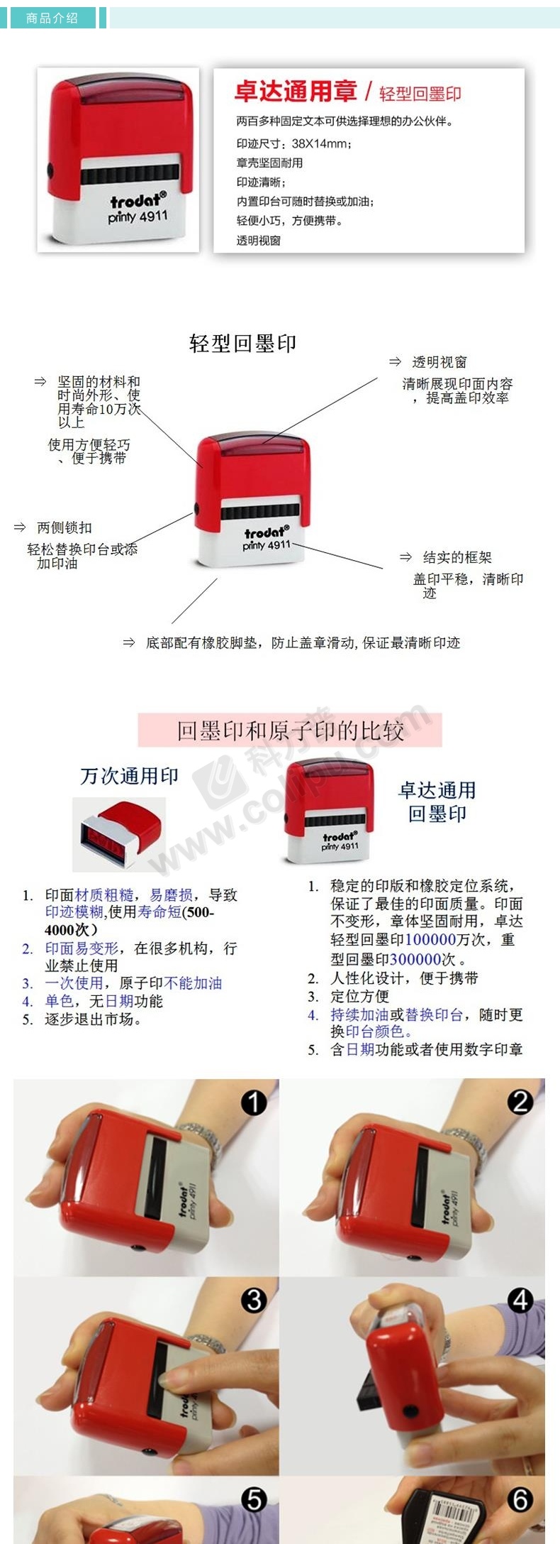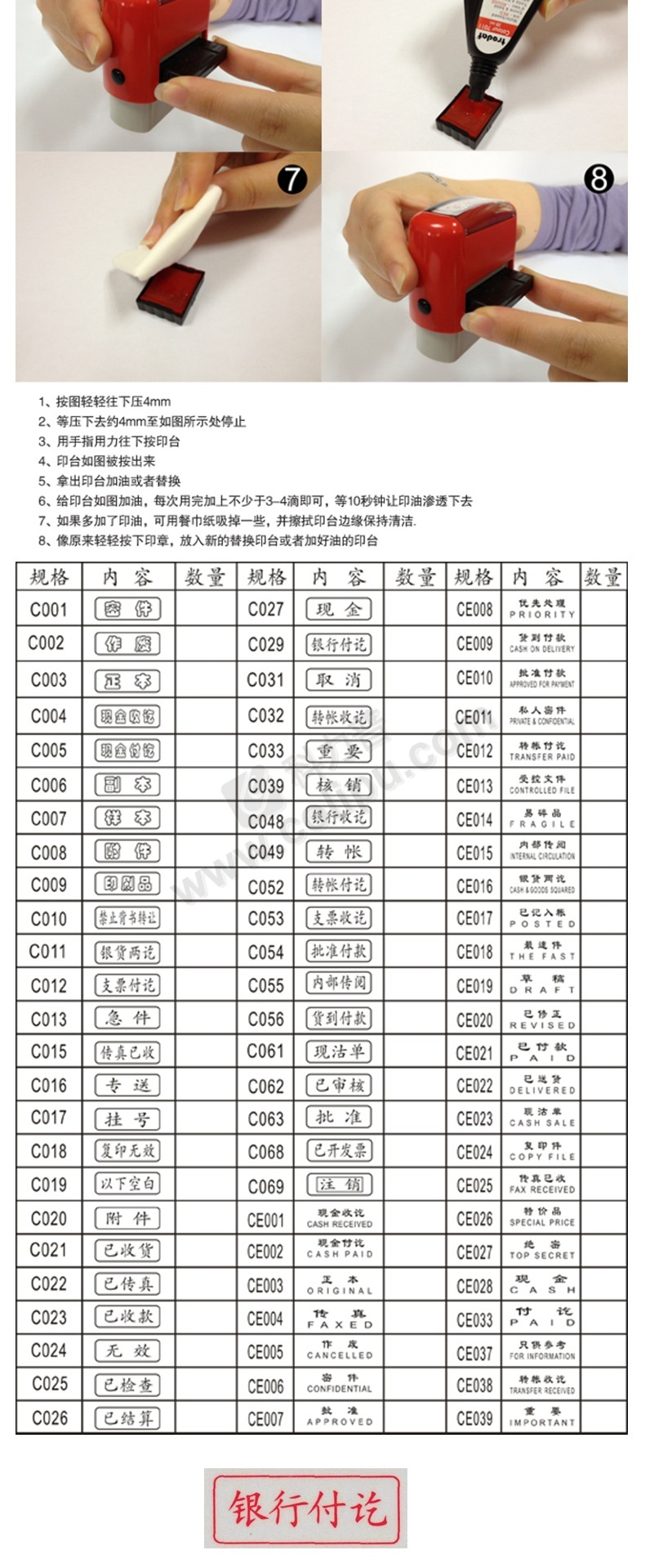 卓达 trodat 4911回墨通用章 C029 字高:7mm (银行付讫章)