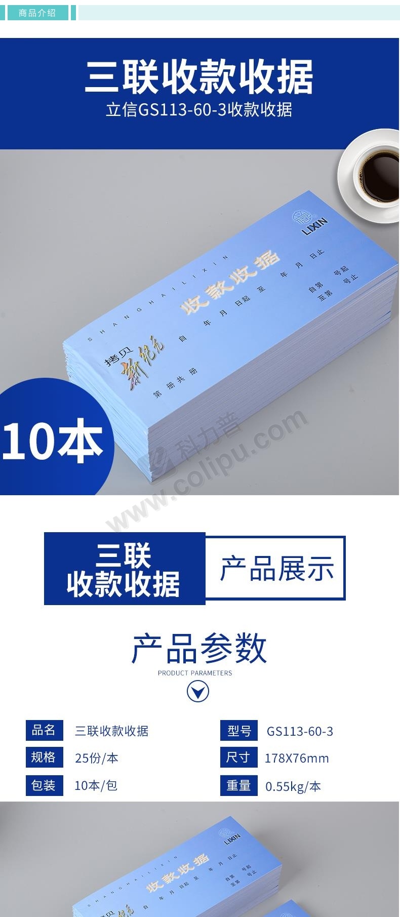 立信 收款收据三联干式复写单 GS113-60-3 60K 25套/本 10本/包 (仅限华东可售)TS