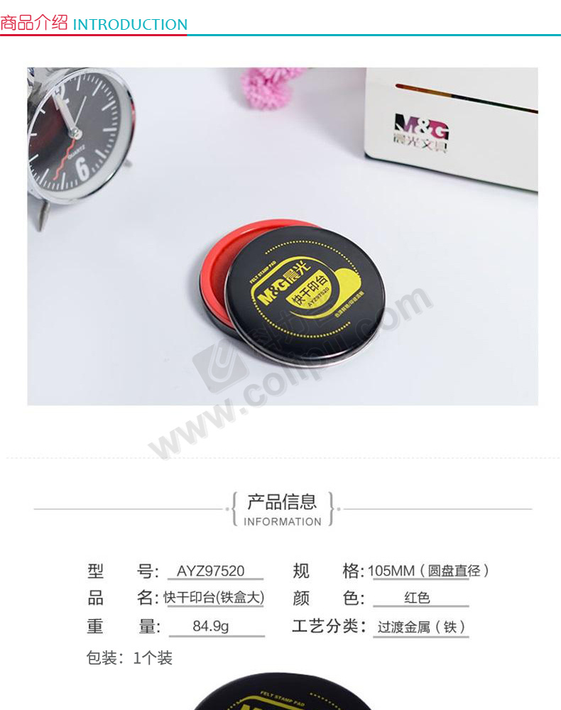 欧标 圆形快干印泥 YY01 直径6.8cm 红色