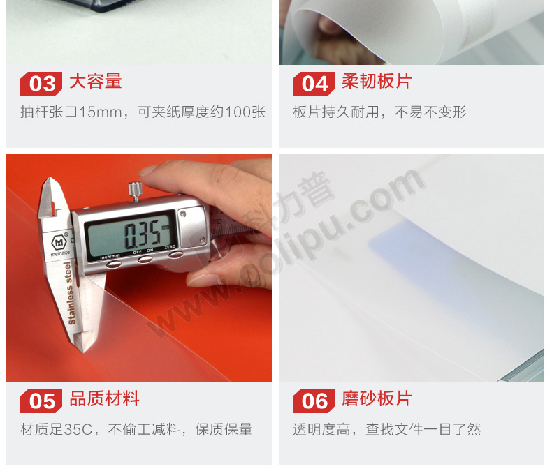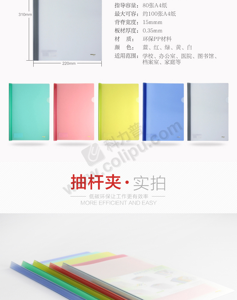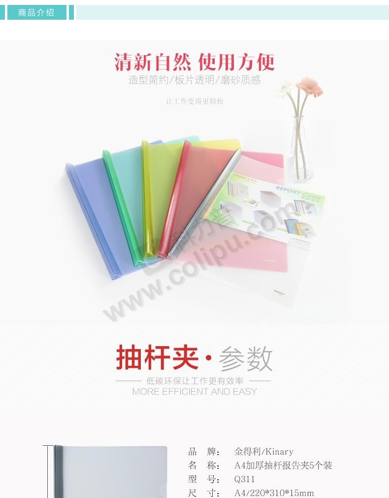 金得利 加厚抽杆式报告夹 Q311 A4 15mm (红色、蓝色、绿色、黄色、白色) 5个/包 (颜色随机)