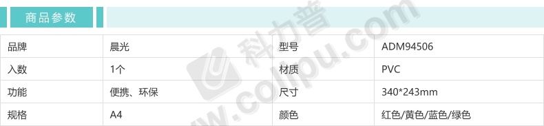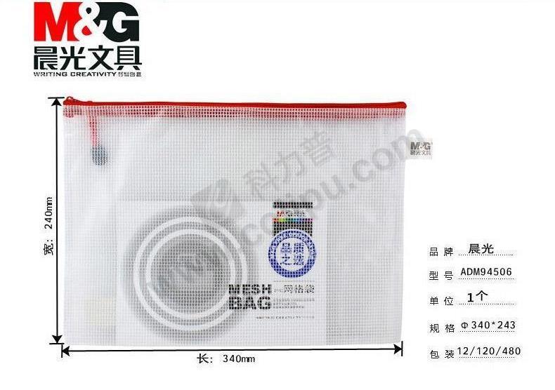晨光 M&G PVC拉链袋 ADM94506 A4 (红色、蓝色、黄色、绿色) (颜色随机)