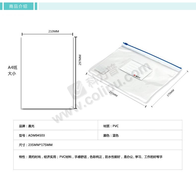 晨光 M&G PVC拉边袋 ADM94503 A5 (红色、蓝色、黄色、绿色) (颜色随机)
