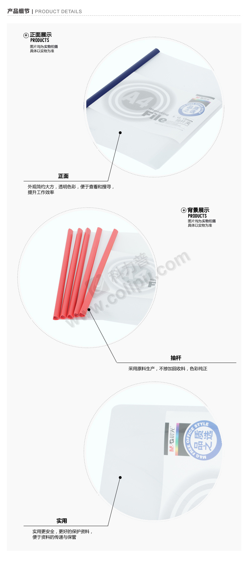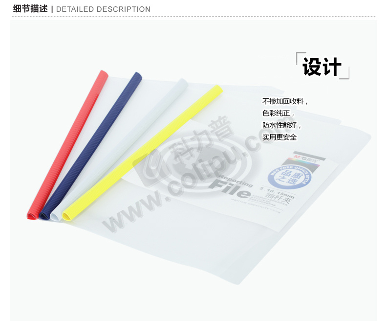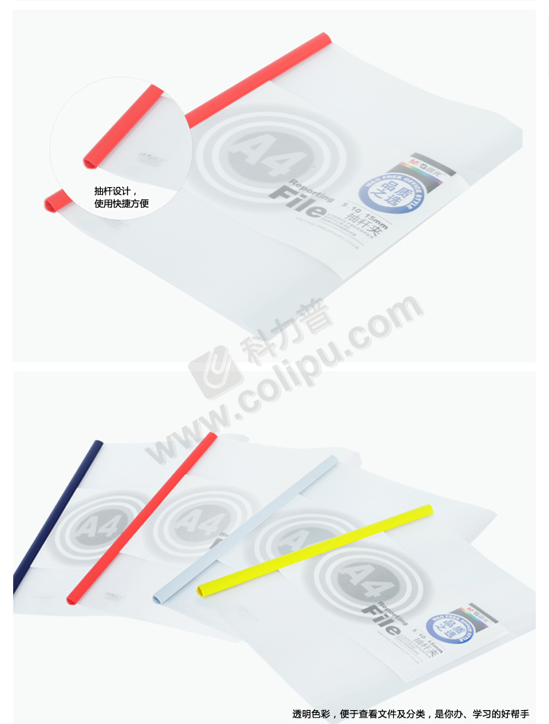 晨光 M&G 抽杆夹报告夹 ADM94519 A4 5mm (红色、蓝色、黄色、绿色、白色) 10个/包 (颜色随机)