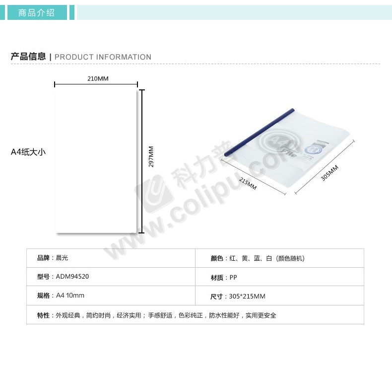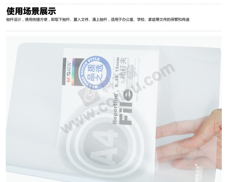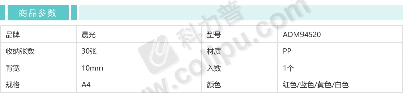 晨光 M&G 抽杆夹报告夹 ADM94520 A4 10mm (红色、蓝色、黄色、白色、绿色) (颜色随机)