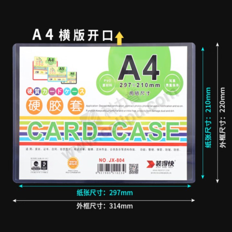 装得快 硬胶套 JX-804 A4 (透明色) 20个/包