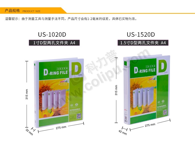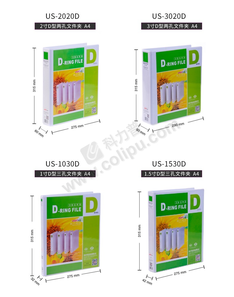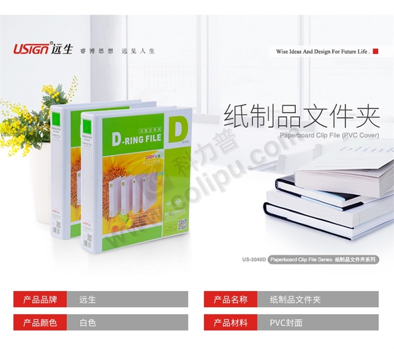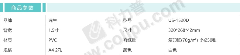 远生 加插封面文件夹 US-1520D A4 1.5寸2孔 (白色) 10个/箱