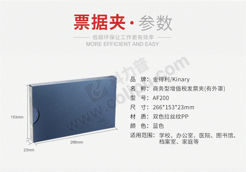 金得利 KINARY 增值税发票夹 AF200 背宽:23mm (蓝色) 1个