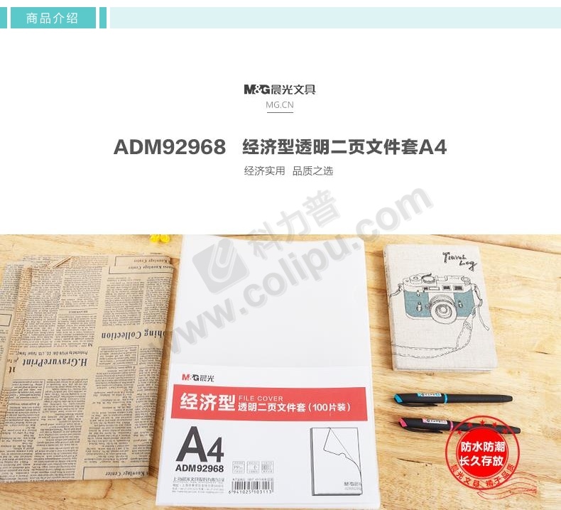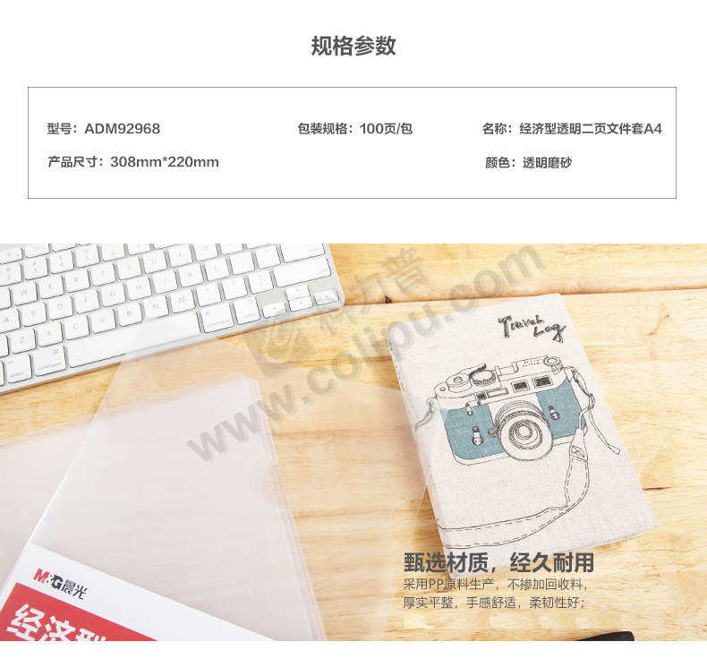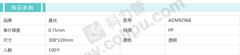 晨光 M&G 经济型透明二页文件套 ADM92968 A4 (透明色) 100页/套