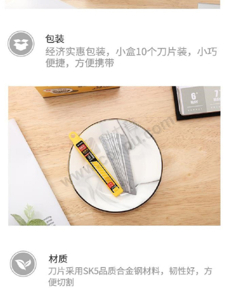得力2012小号美工刀片9mm小刀片 SK5小号美工刀壁纸刀刀片