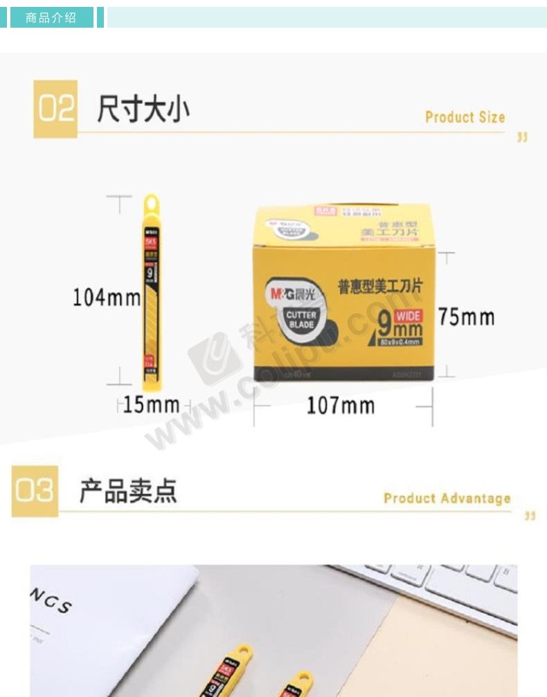 得力 美工刀片 2012 9mm 0.4*9*80mm 45度 10片/盒 银色规格:2012 小号