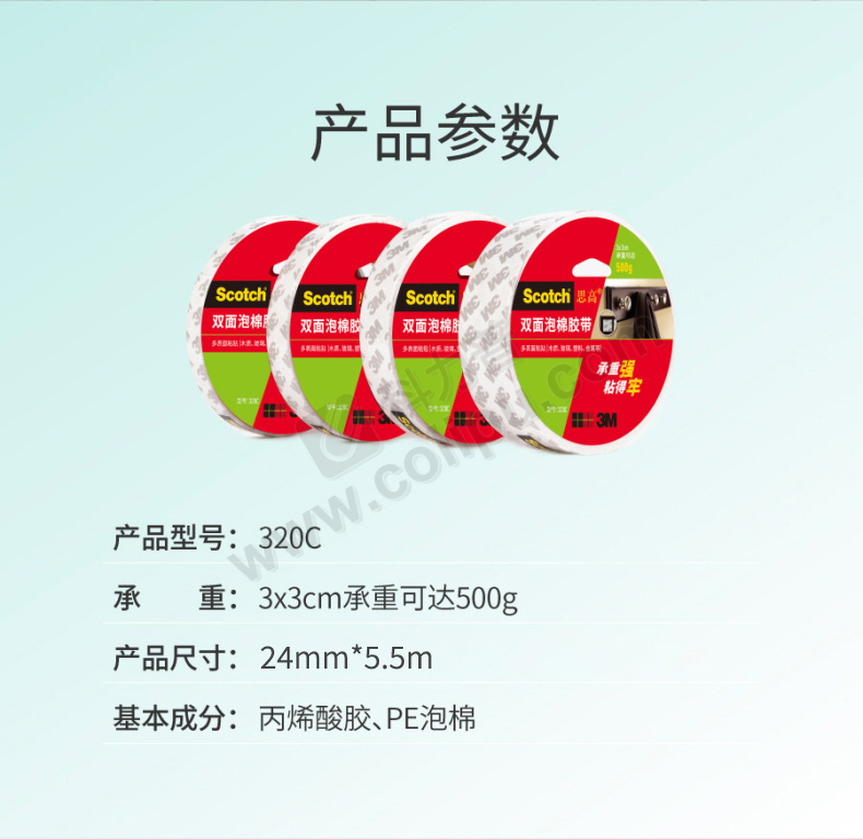 3M 思高 双面泡棉胶带 320c 24mm*5.5m 6卷/包