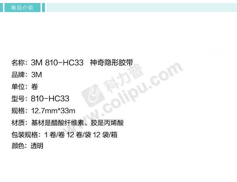 3M 隐形胶带 810 19mm3/4*25m规格:19mm*25m