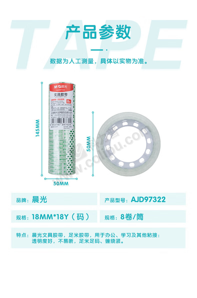 晨光 M&G 透明胶带 AJD97322 18mm*18Y 8卷/筒
