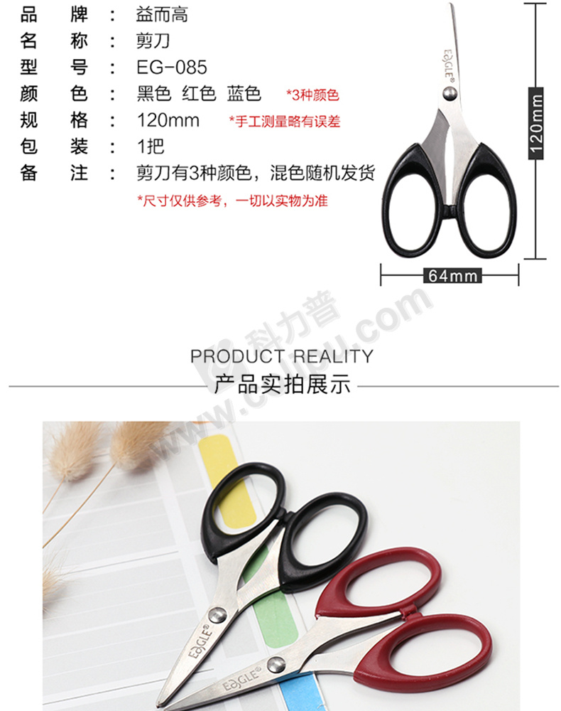 益而高 Eagle 5寸长剪刀 EG-085 120mm (混色) 12把/盒 (颜色随机)