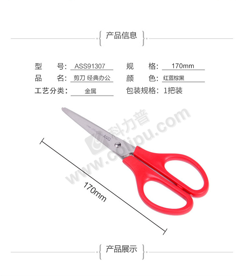 晨光 经典办公剪刀 ASS91312 195mm 单个装 碳素钢材 红/黑