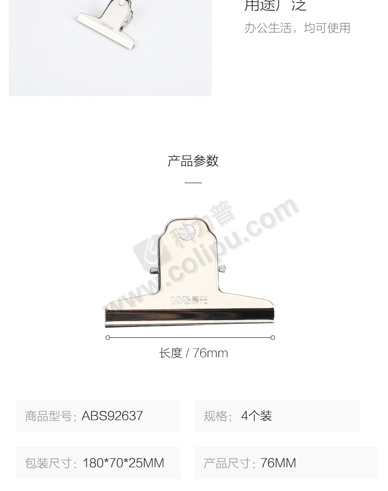 晨光 M&G 山形票夹 ABS92637 76mm (银色) 4个/袋
