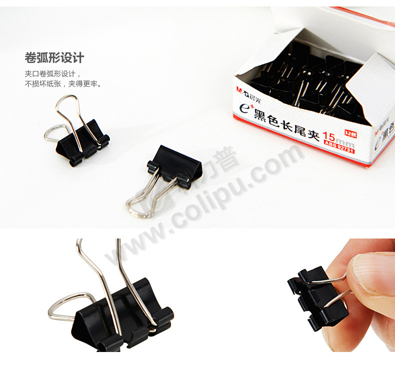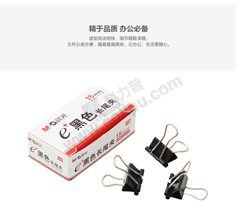 晨光 M&G Eplus盒装黑色长尾夹 6号 ABS92731 15mm 12个/盒