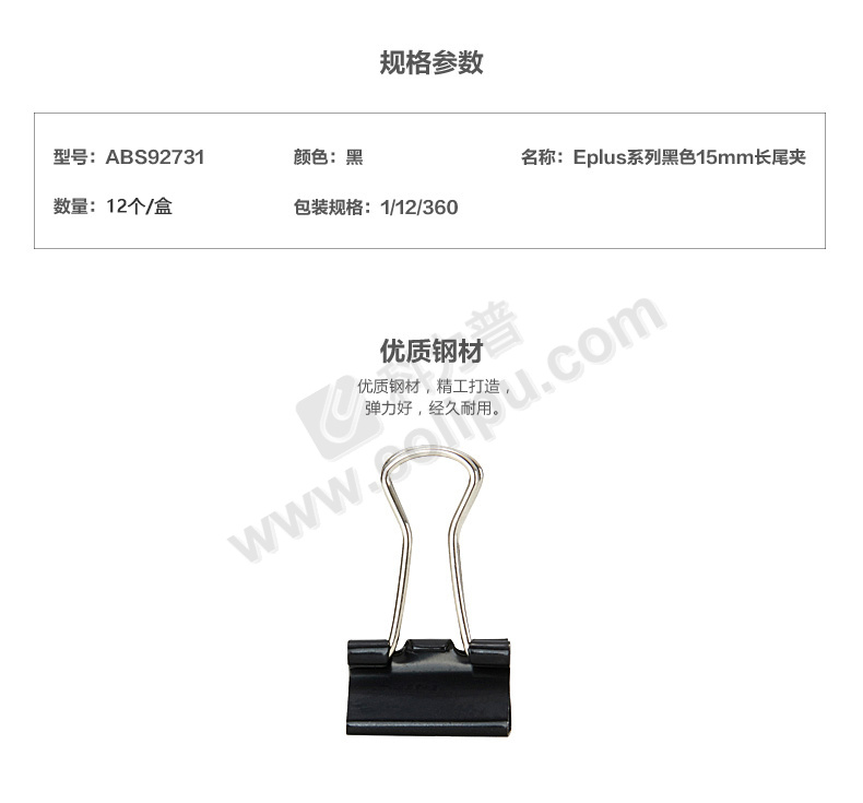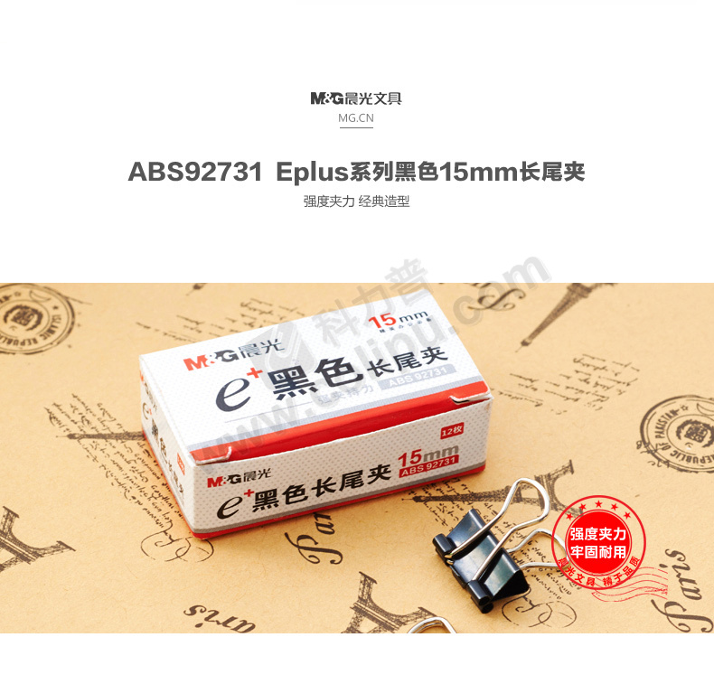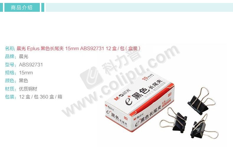 晨光 M&G Eplus盒装黑色长尾夹 ABS92730 5# 19mm 12个/盒 12盒/包 300盒/箱