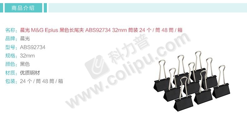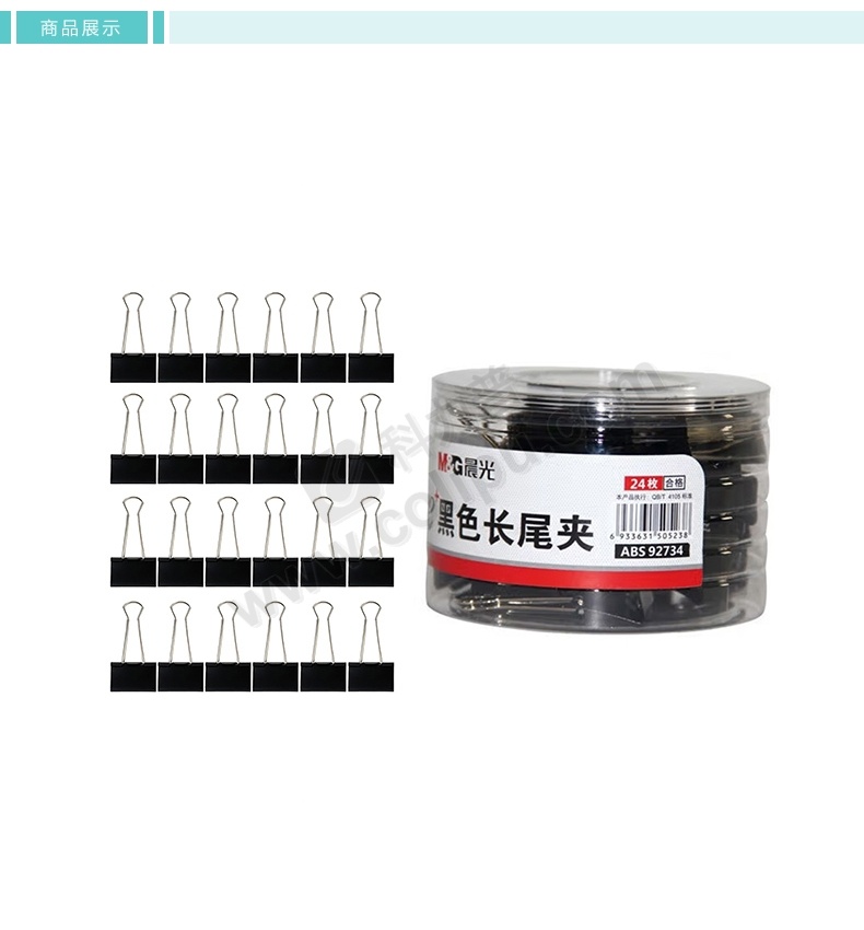 晨光 M&G Eplus筒装黑色长尾夹 3号 ABS92734 32mm 24个/筒