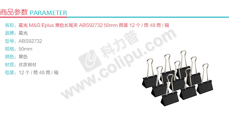 齐心 B3632长尾票夹 2# 41mm 24只/筒