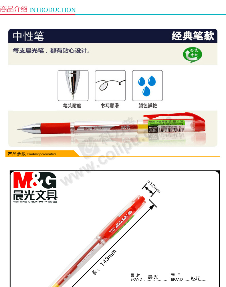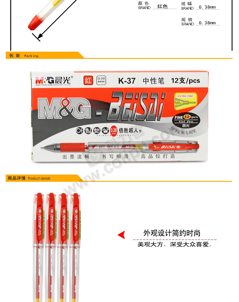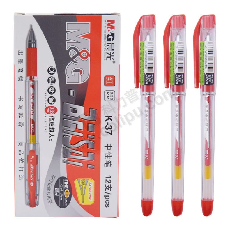 晨光 M&G 拔帽中性笔 K-37 0.38mm (红色) 12支/盒 (替芯:MG6100)