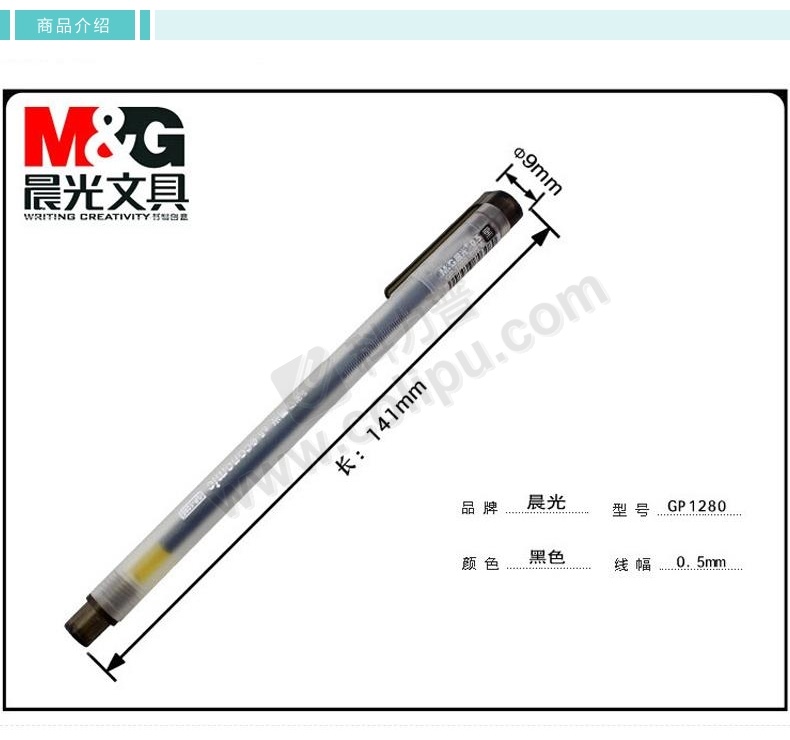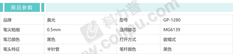 晨光 M&G 拔帽中性笔 GP-1280 0.5mm (黑色) 12支/盒 (替芯 MG6139)