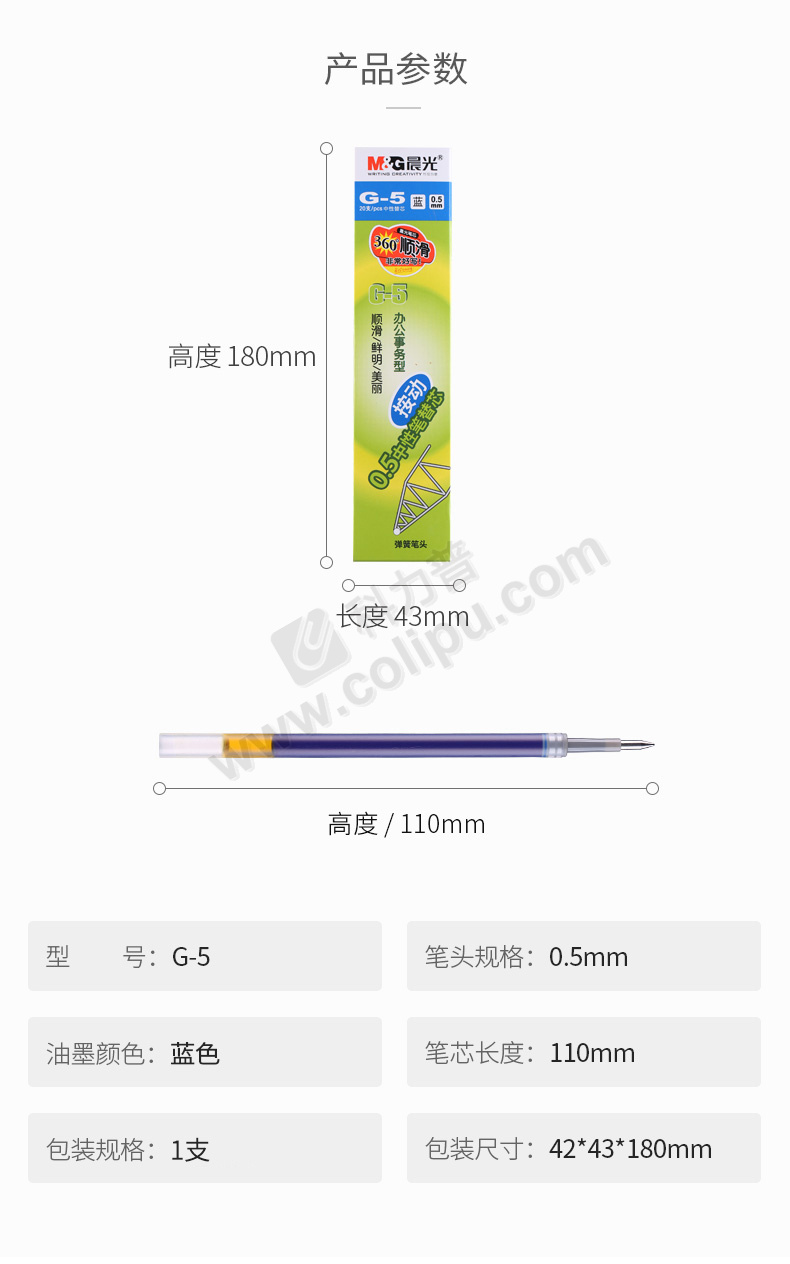 晨光水笔芯G-5 墨蓝 0.5mm 单支