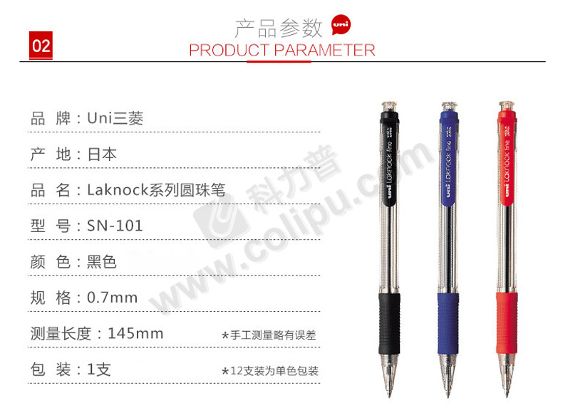 三菱 uni 按压式圆珠笔 SN-101 0.7mm (黑色) 12支/盒