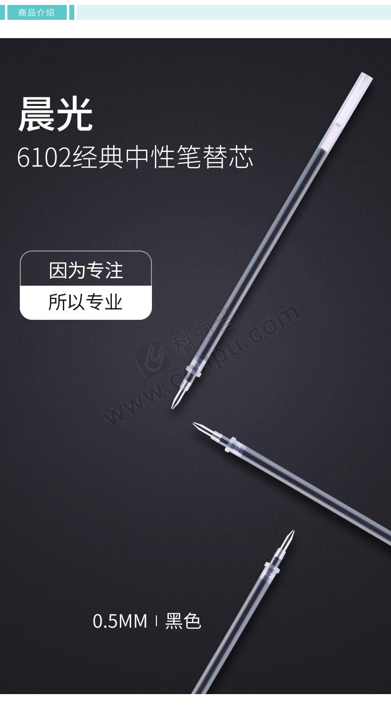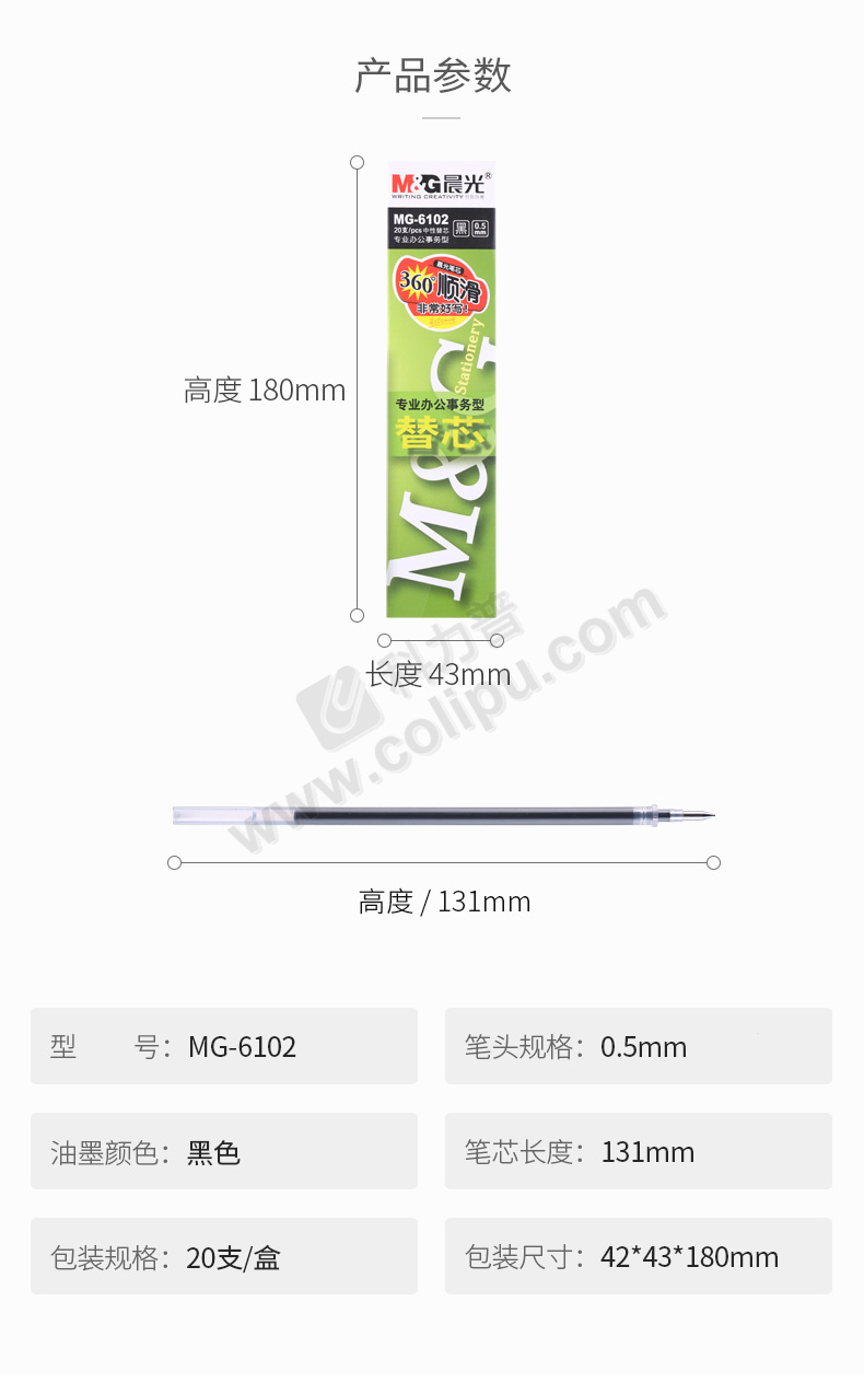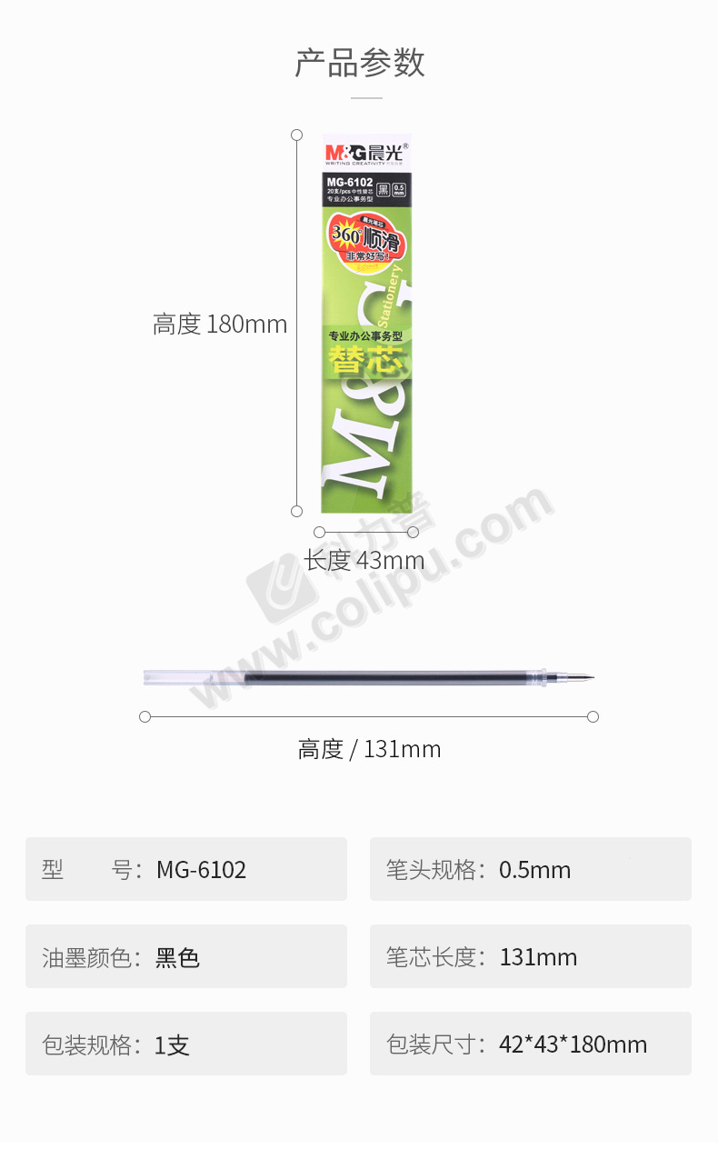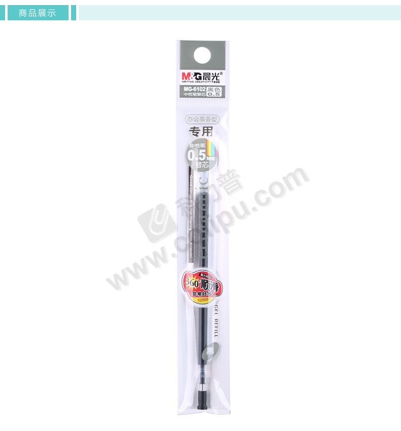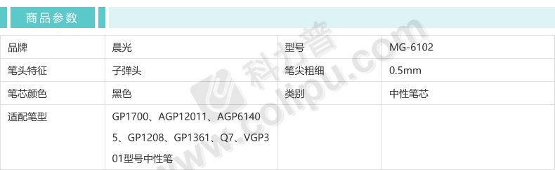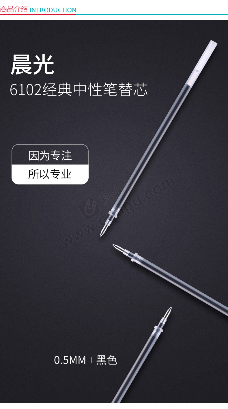 晨光 M&G 中性笔笔芯 MG-6102 0.5mm (黑色) 20支/盒 (适用于GP1700、AGP12011、AGP61405、GP1208、GP1361、Q7、VGP301型号中性笔)塑料 中性笔笔芯