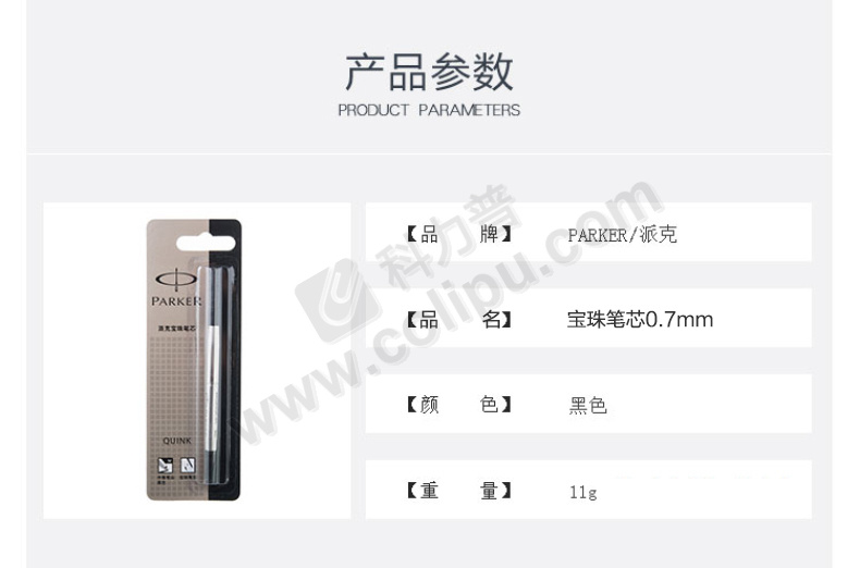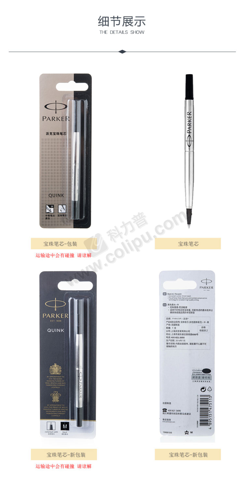 派克 PARKER 宝珠笔芯 0.7mm (黑色) 1支/卡 (新老包装随机发货)金属中性笔笔芯