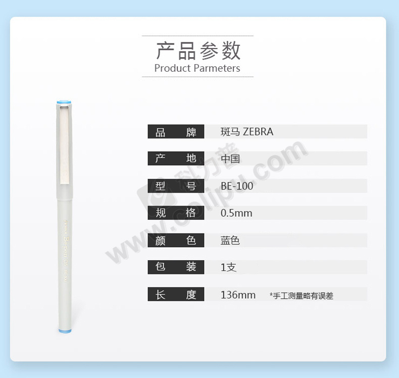 斑马牌(ZEBRA) 拔帽签字笔 BE-100 0.5mm (蓝色) 10支/盒
