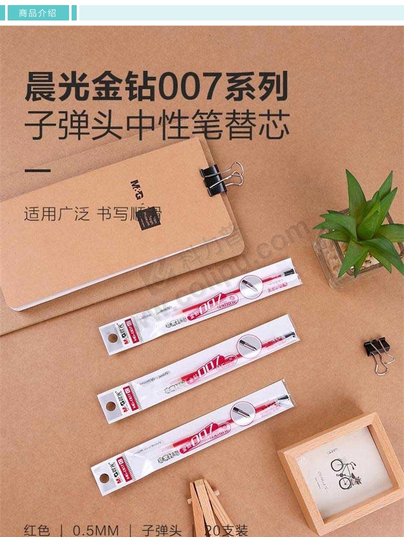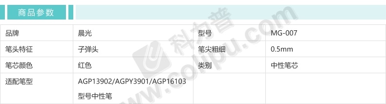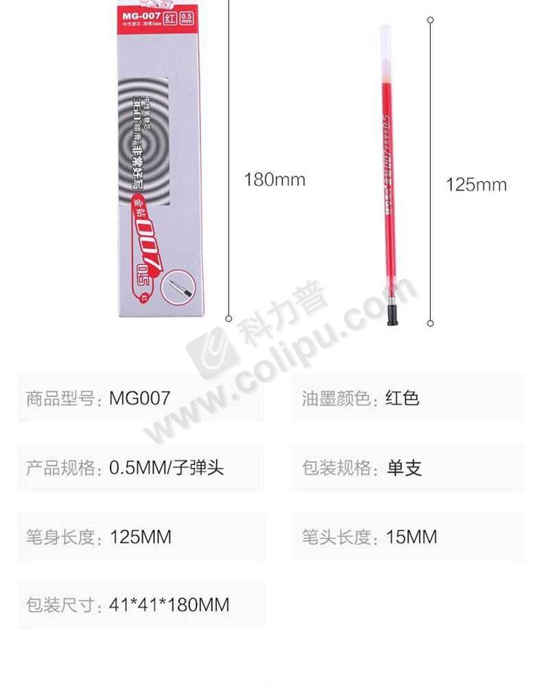 晨光 M&G 中性替芯 MG-007 0.5mm (红色) 20支/盒 (适用于AGP13902型号中性笔)