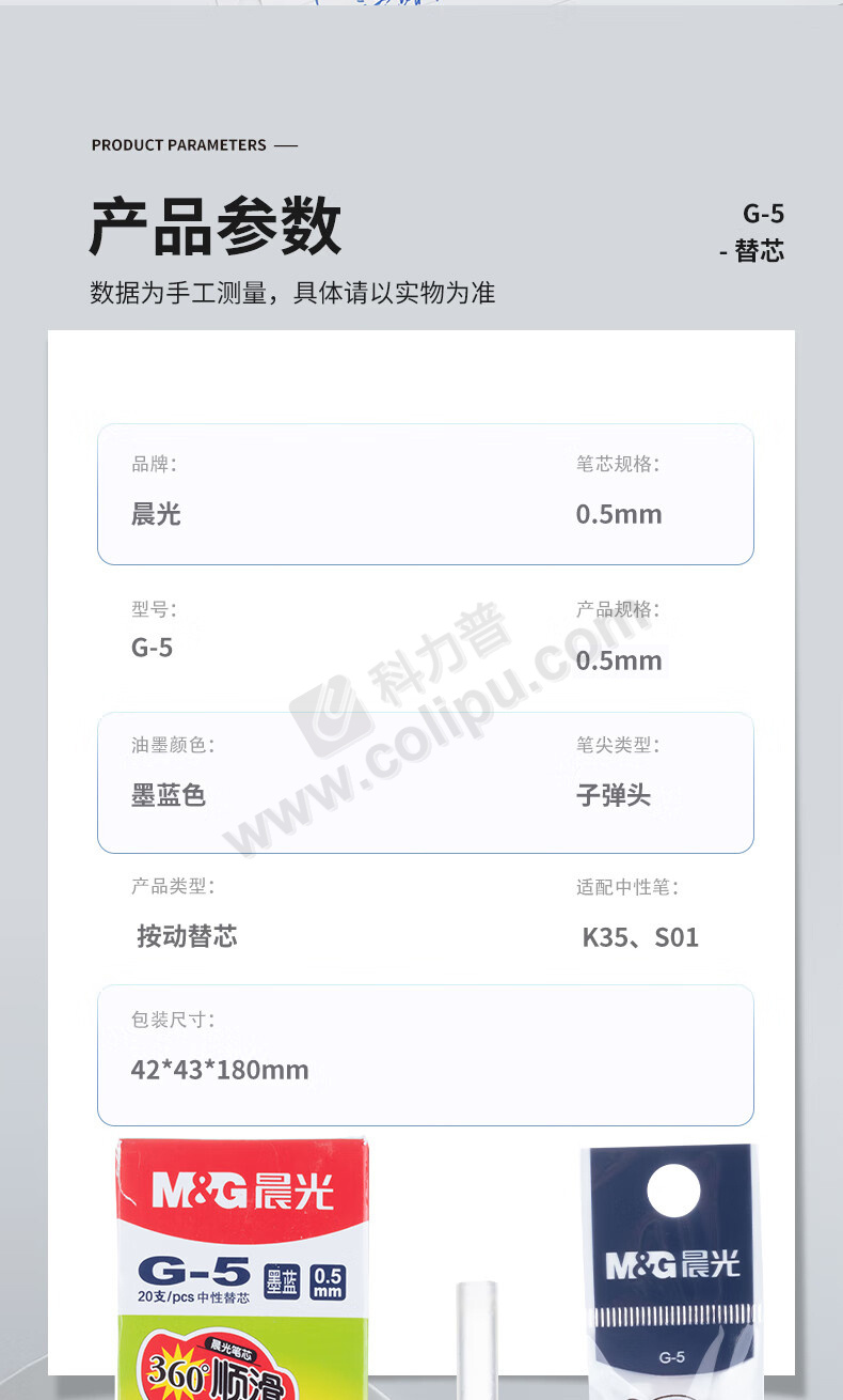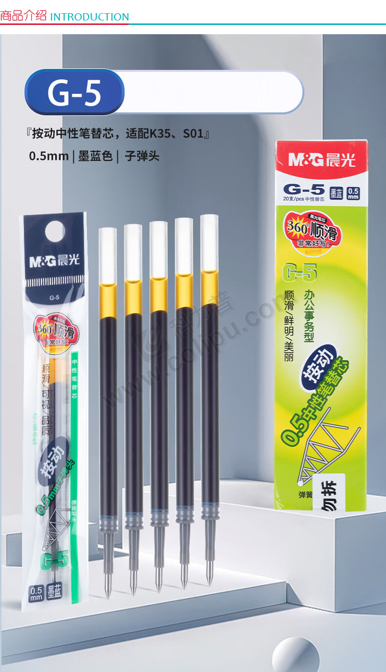 晨光水笔芯G-5 墨蓝 0.5mm 单支