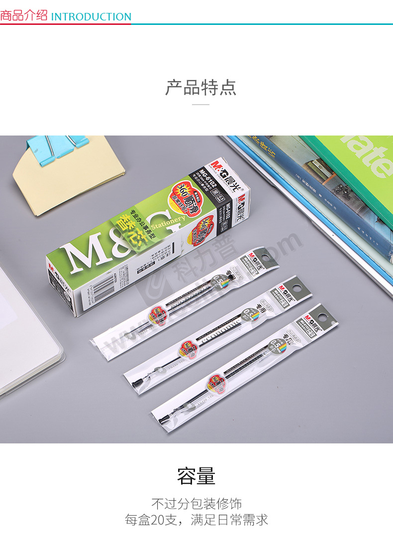 晨光 M&G 中性笔笔芯 MG-6102 0.5mm (黑色) 20支/盒 (适用于GP1700、AGP12011、AGP61405、GP1208、GP1361、Q7、VGP301型号中性笔)(大包装)