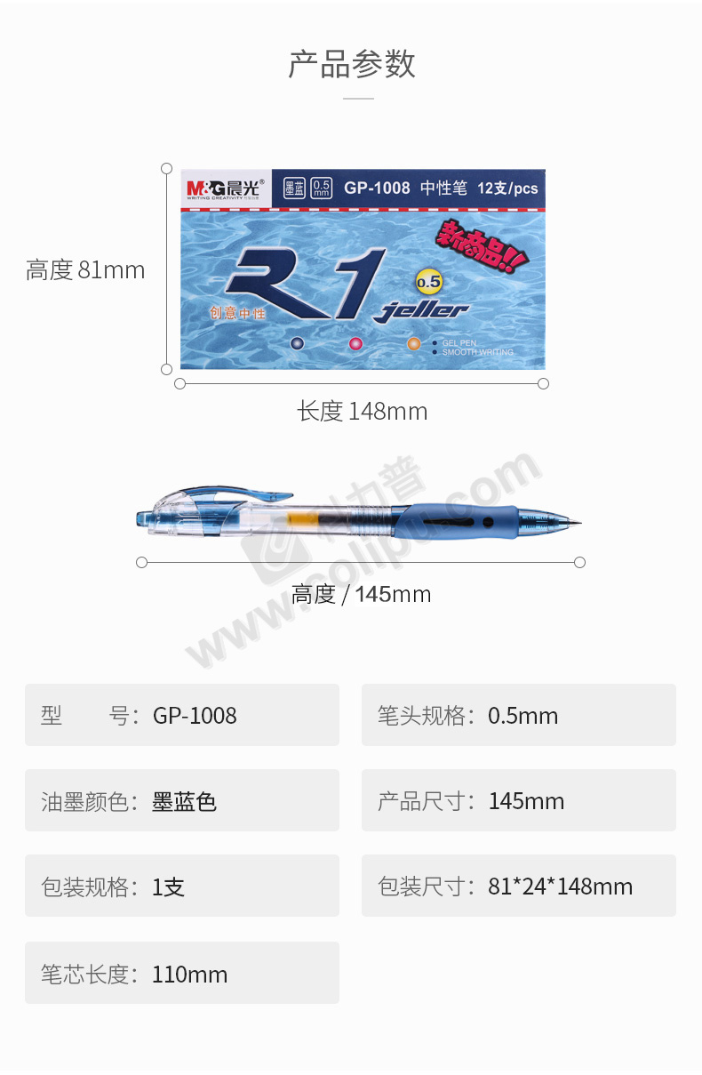 晨光 M&G 按动中性笔 GP-1008 0.5mm (墨蓝) 12支/盒 (替芯 G-5)