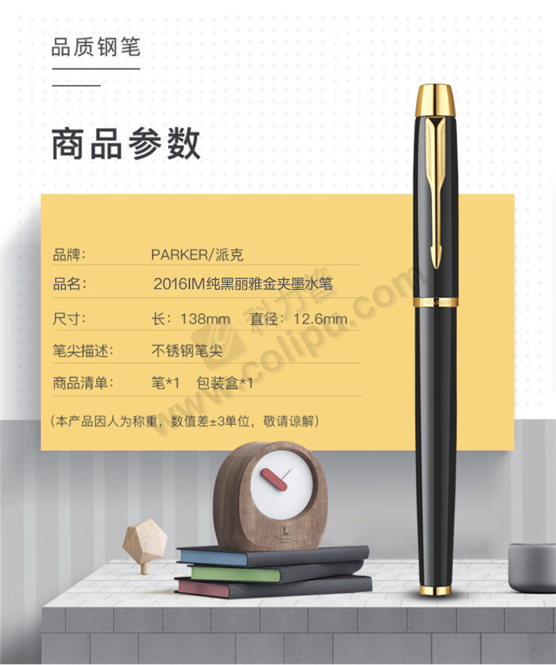 派克 PARKER IM纯黑丽雅金夹墨水笔 IM F尖 TS