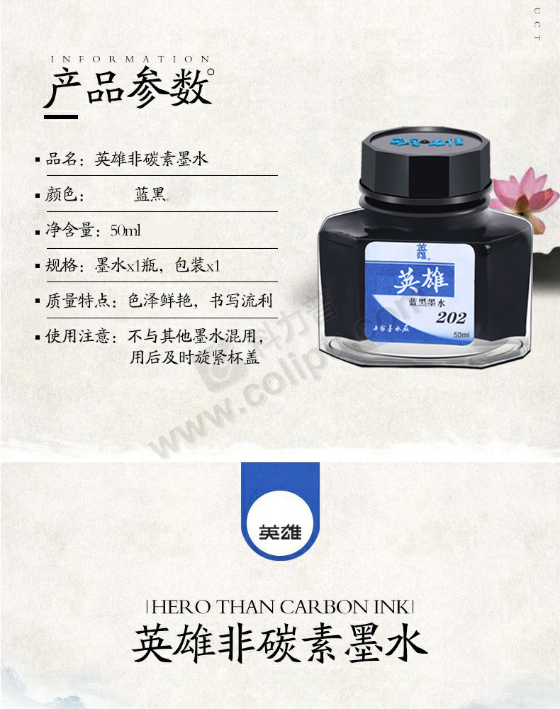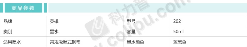 英雄 HERO 普通墨水 202 50ml (蓝黑色) (新老包装交替中)