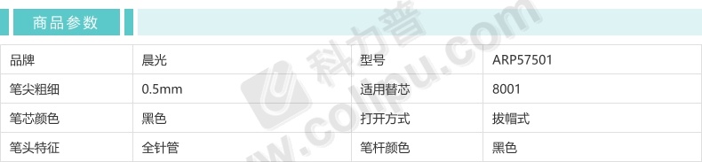 晨光 M&G 拔帽直液式全针管速干签字笔 ARP57501 0.5mm (黑色) 12支/盒 (替芯 8001)