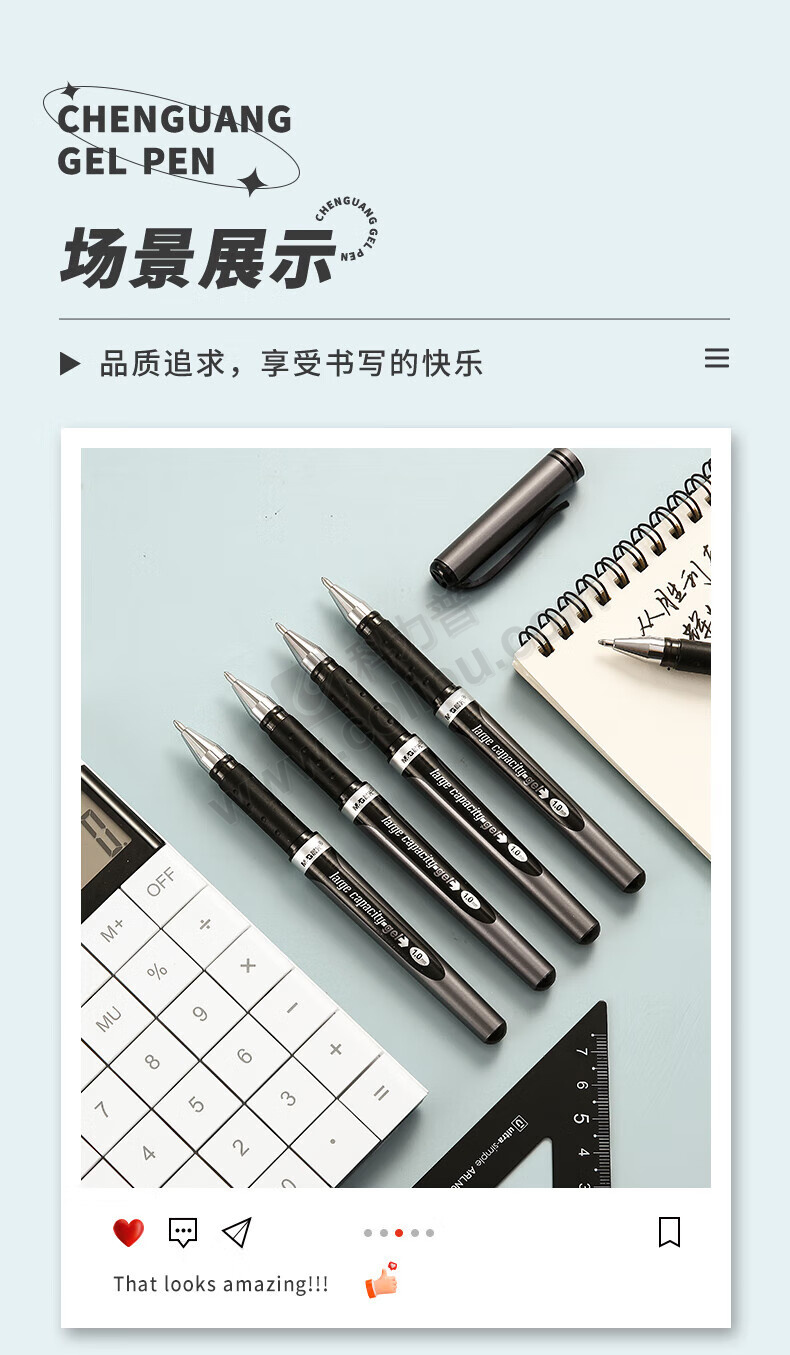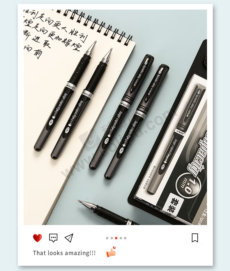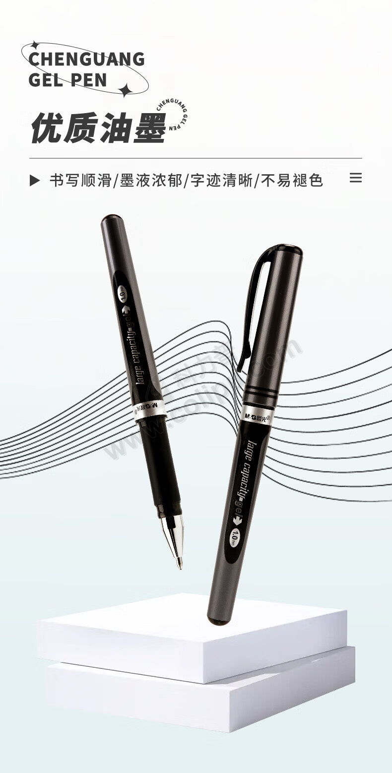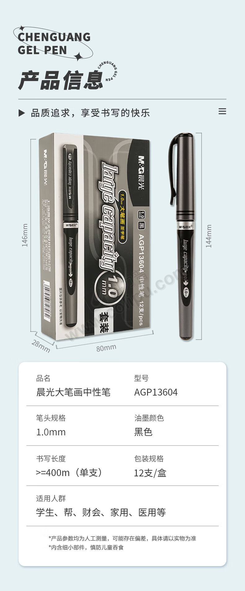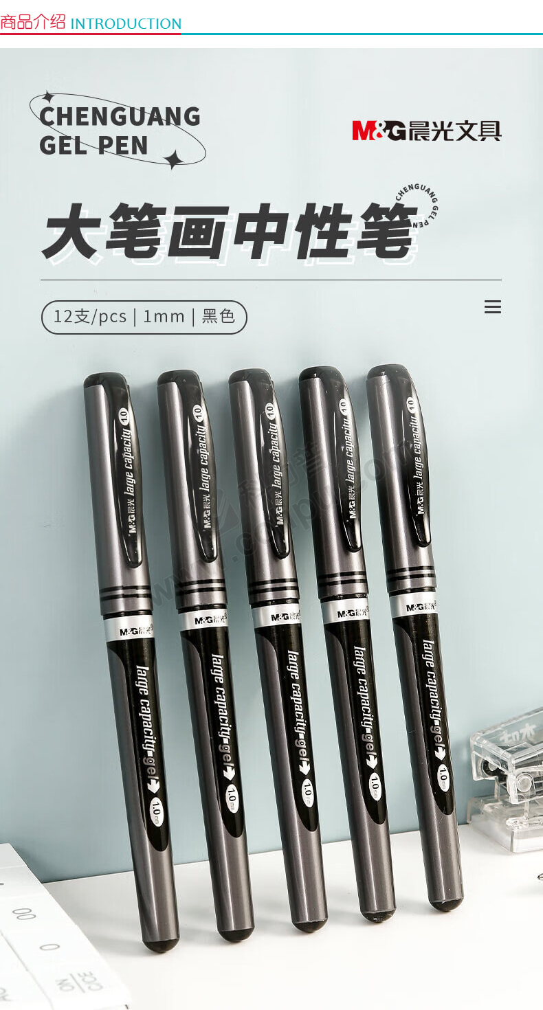 晨光 M&G 拔帽大笔画中性笔 AGP13604 1.0mm (黑色) 12支/盒 (大包装)塑料