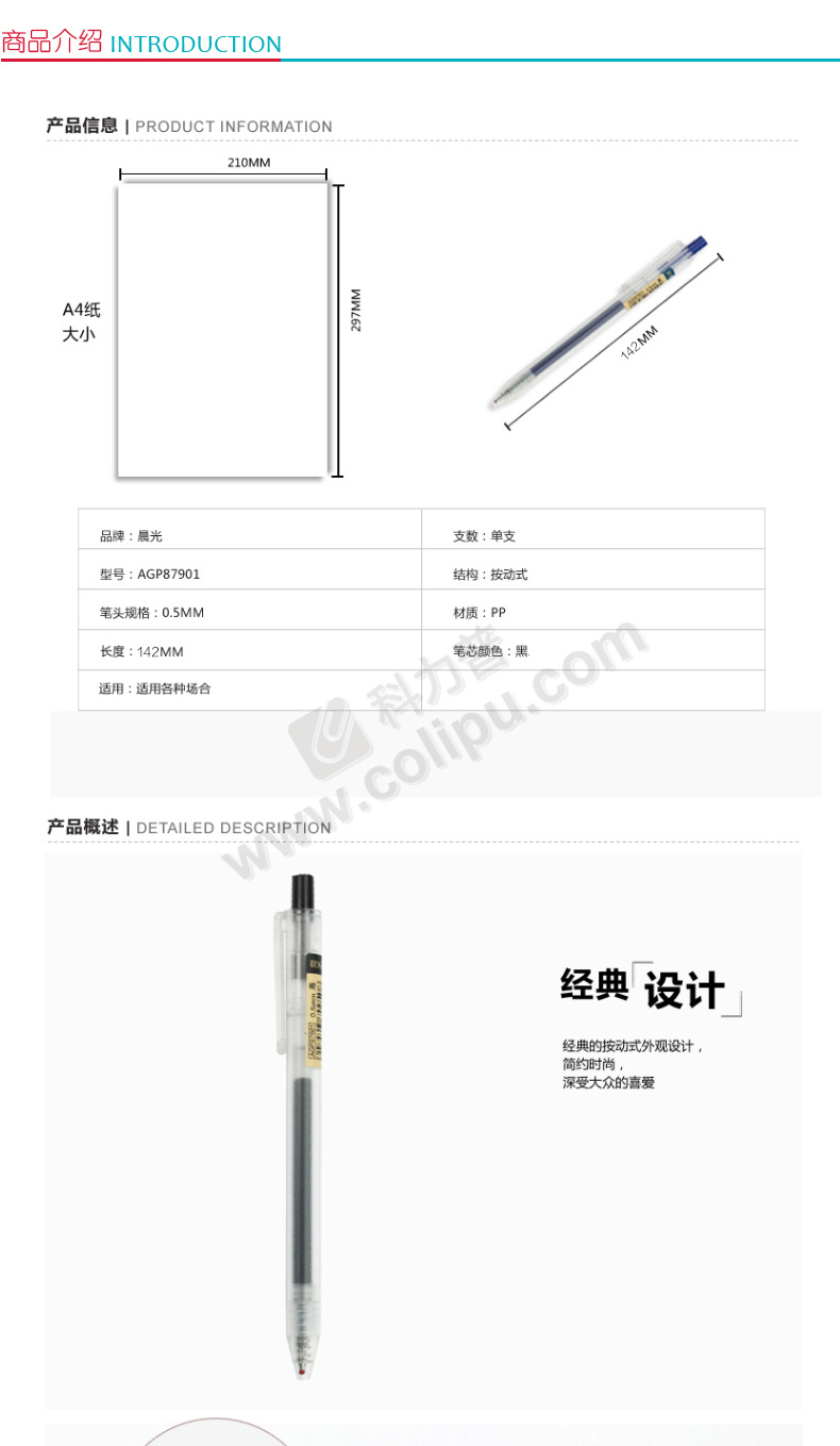 晨光 M&G 按动中性笔 AGP87901 0.5mm (黑色) 12支/盒 (替芯 G-5)