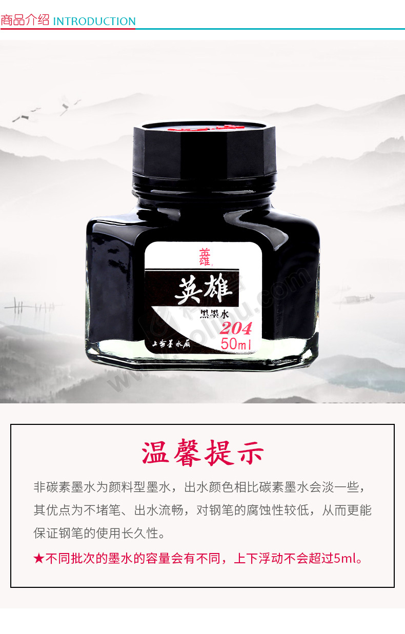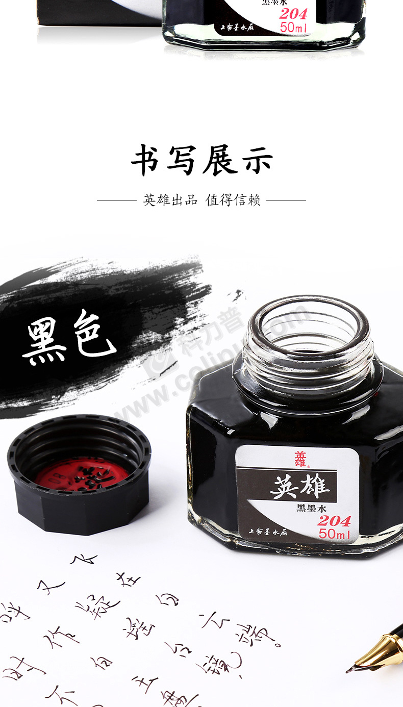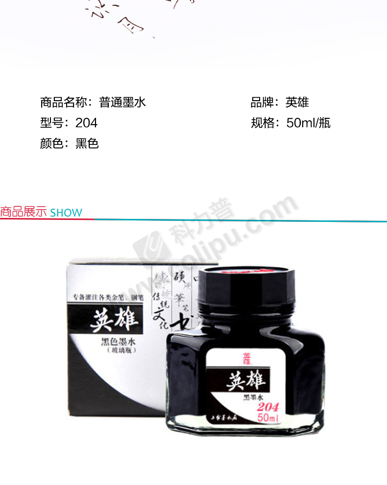 英雄 HERO 普通墨水 204 50ml/瓶 (黑色) 10瓶/盒