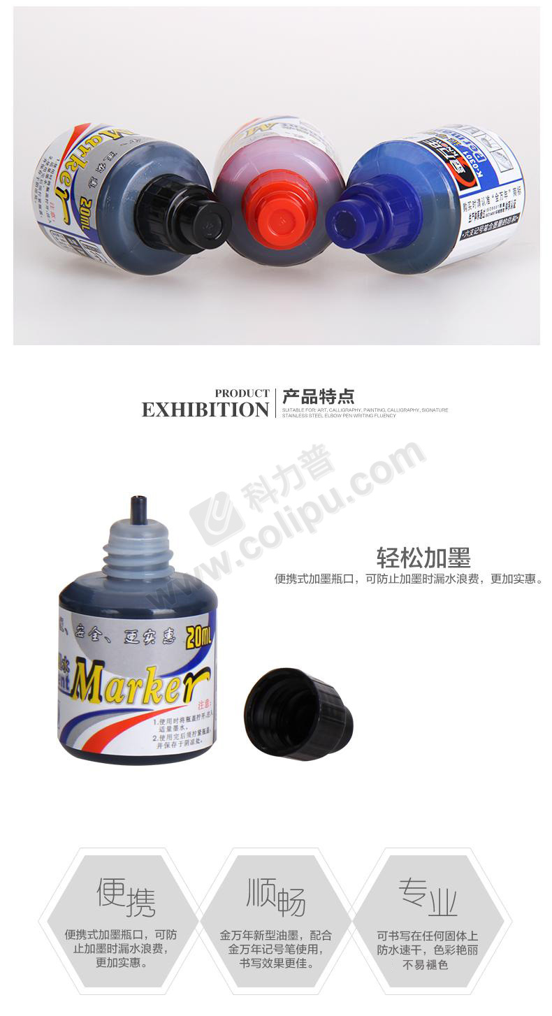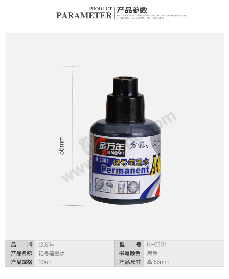 金万年 记号笔墨水 K-0301 20ml (黑色) 24瓶/盒