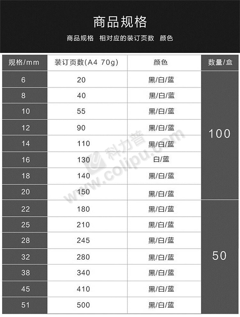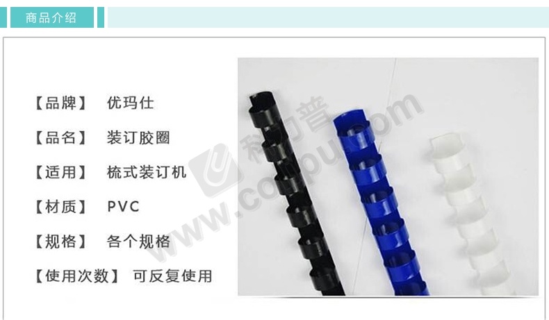 优玛仕 U-mach 21孔装订胶圈 10mm (黑色) 100根/盒 (可装订<60张)